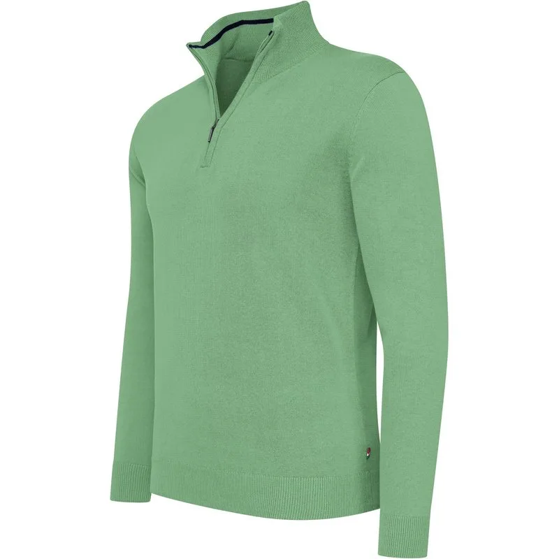 Cappuccino Italia Bergamo Zip Pullover voor heren. De pullover is gemaakt van 50% katoen en 50% polyester en heeft een normale pasvorm. De trui is voorzien van een opstaande kraag, die met een rits naar smaak kan worden open gezet of gesloten. Merk: Cappuccino ItaliaModelnaam: Bergamo Zip Pullover (met overhemdkraag)Categorie: heren truiMaterialen: katoen, acrylKleur: groen, wit