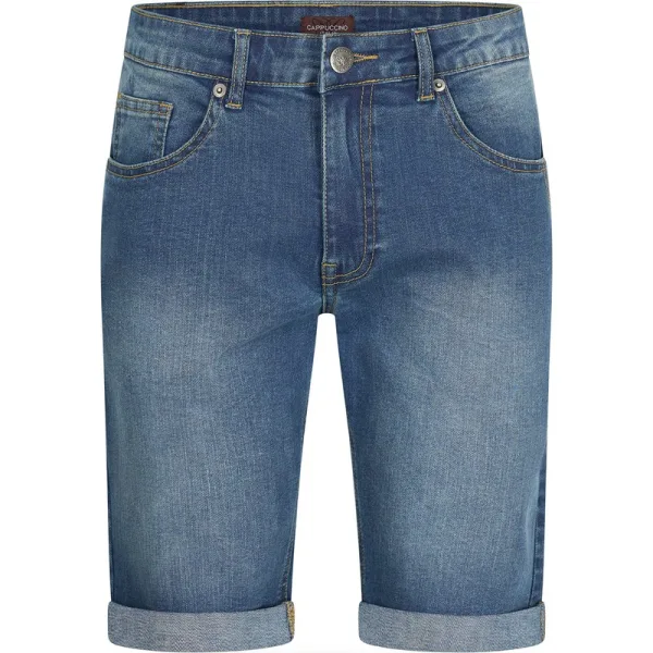 Cappuccino Italia denim short voor heren. De short is gemaakt van katoen en elastaan, en heeft een normale pasvorm. De elastaan zorgt voor een lekkere rek in de stof. De short heeft 2 steekzakken en 2 kontzakken.