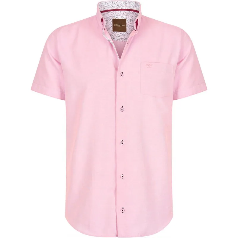 Cappuccino Italia korte mouw overhemd voor heren. Het overhemd is gemaakt van katoen en polyester en heeft een normale pasvorm. Merk: Cappuccino ItaliaModelnaam: Overhemd Korte MouwCategorie: herenMaterialen: katoen, polyesterKleur: roze, wit