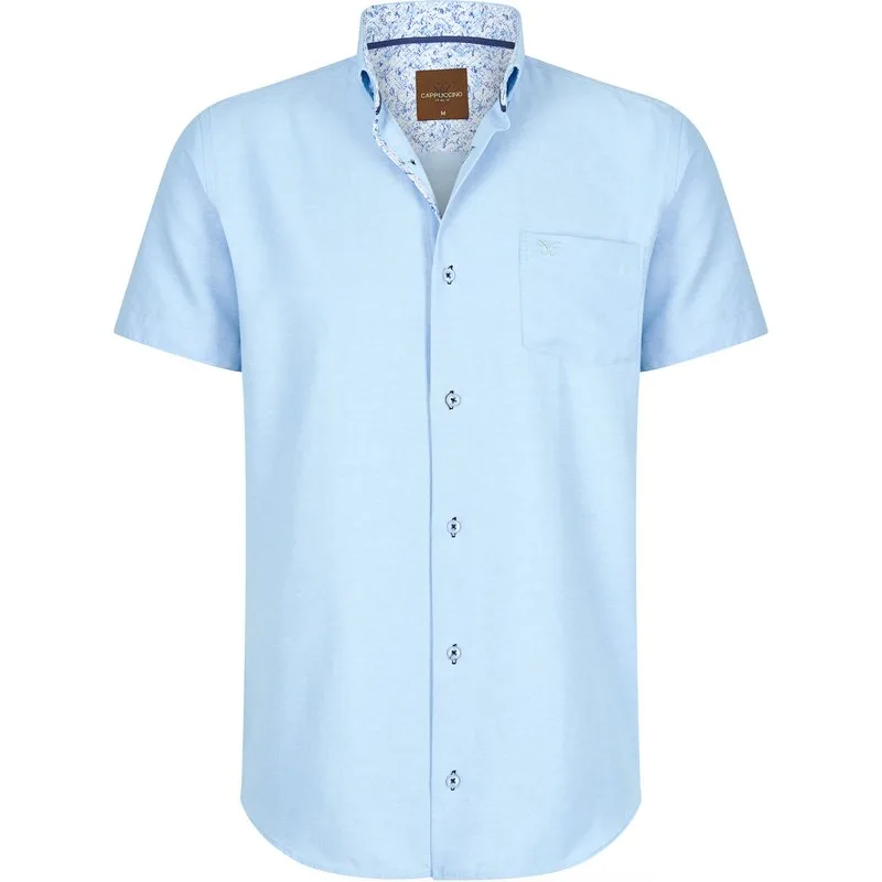 Cappuccino Italia korte mouw overhemd voor heren. Het overhemd is gemaakt van katoen en polyester en heeft een normale pasvorm. Merk: Cappuccino ItaliaModelnaam: Overhemd Korte MouwCategorie: herenMaterialen: katoen, polyesterKleur: blauw, wit
