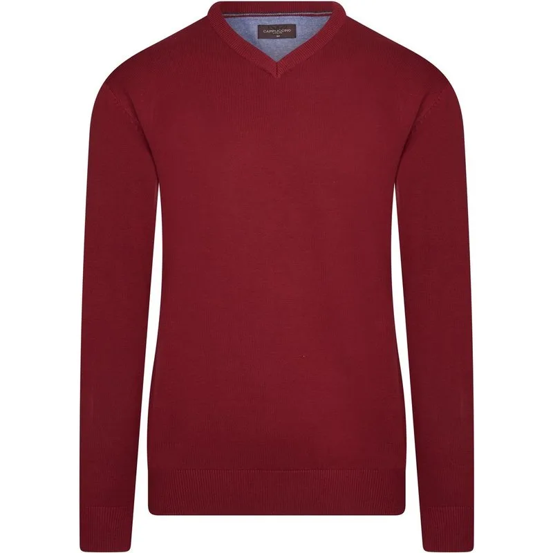 Cappuccino Italia pullover voor heren. De pullover is gemaakt van 50% katoen en 50% acryl en heeft een normale pasvorm. Merk: Cappuccino ItaliaModelnaam: PulloverCategorie: heren pulloverMaterialen: katoen, acrylKleur: rood