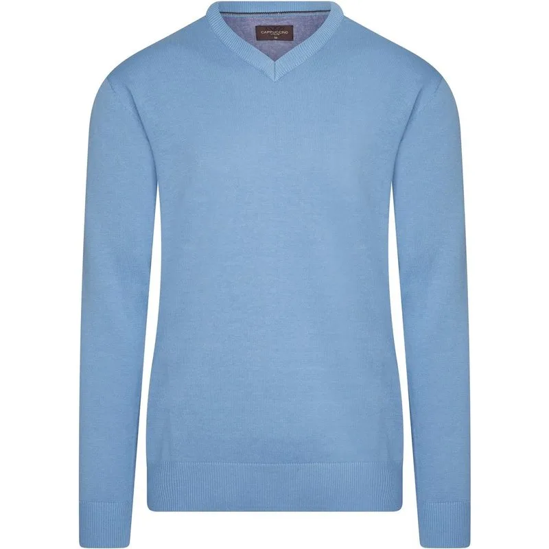 Cappuccino Italia pullover voor heren. De pullover is gemaakt van 50% katoen en 50% acryl en heeft een normale pasvorm. Merk: Cappuccino ItaliaModelnaam: PulloverCategorie: heren pulloverMaterialen: katoen, acrylKleur: sky blauw