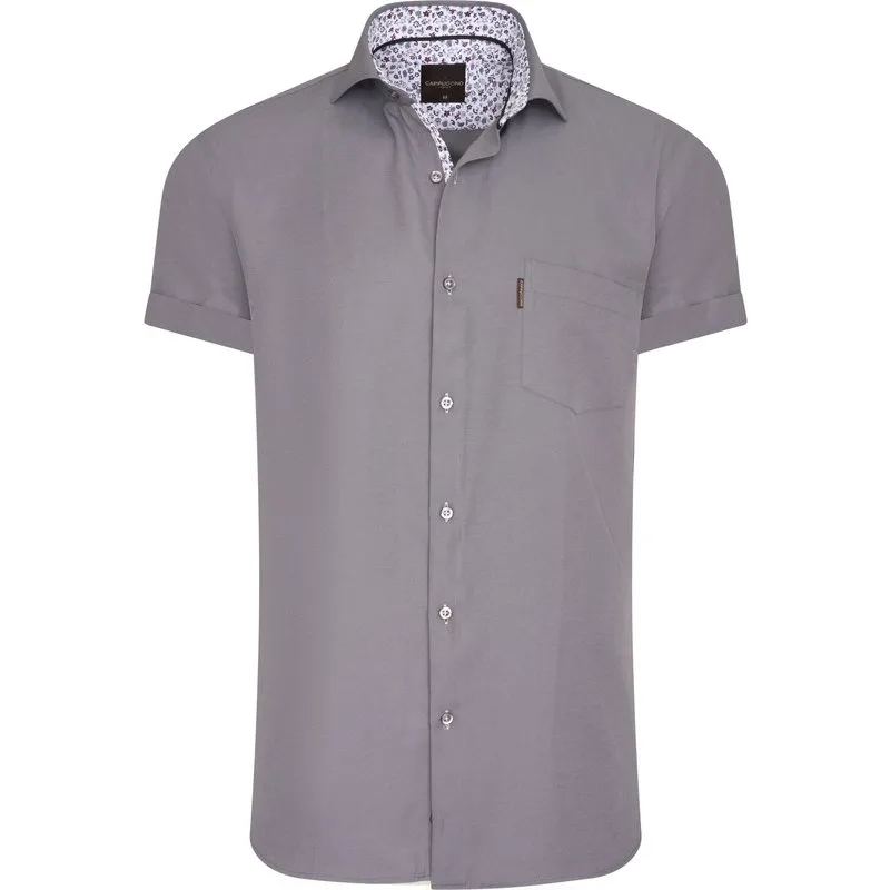 Cappuccino Italia Heren Overhemden Short Sleeve Blouse Antraciet Grijs