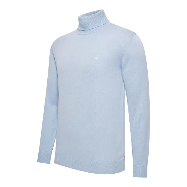 Cappuccino Italia high neck coltrui voor heren. De high neck coltrui is gemaakt van katoen en acryl, en heeft een mooie aansluitende pasvorm. Merk: Cappuccino ItaliaModelnaam: Trento High NeckCategorie: heren truiMaterialen: katoen, acrylKleur: lichtblauw