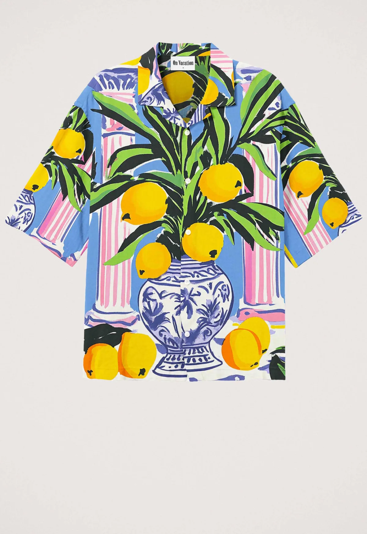Dit is het SH22 Capri Overhemd van het merk On Vacation Club. Dit overhemd heeft een relaxed pasvorm, waardoor het comfortabel aanvoelt en ideaal is voor ontspannen dagen. Het is gemaakt van 100% viscose, wat zorgt voor een zachte aanraking op je huid. Dit stijlvolle shirt beschikt over een openstaande reverskraag en een korte mouw, perfect voor warme zomerdagen. De voorkant is uitgerust met een borstzak, en het shirt heeft een all-over print die wordt aangevuld met een achterkant en mouwdecoraties voor een unieke uitstraling.