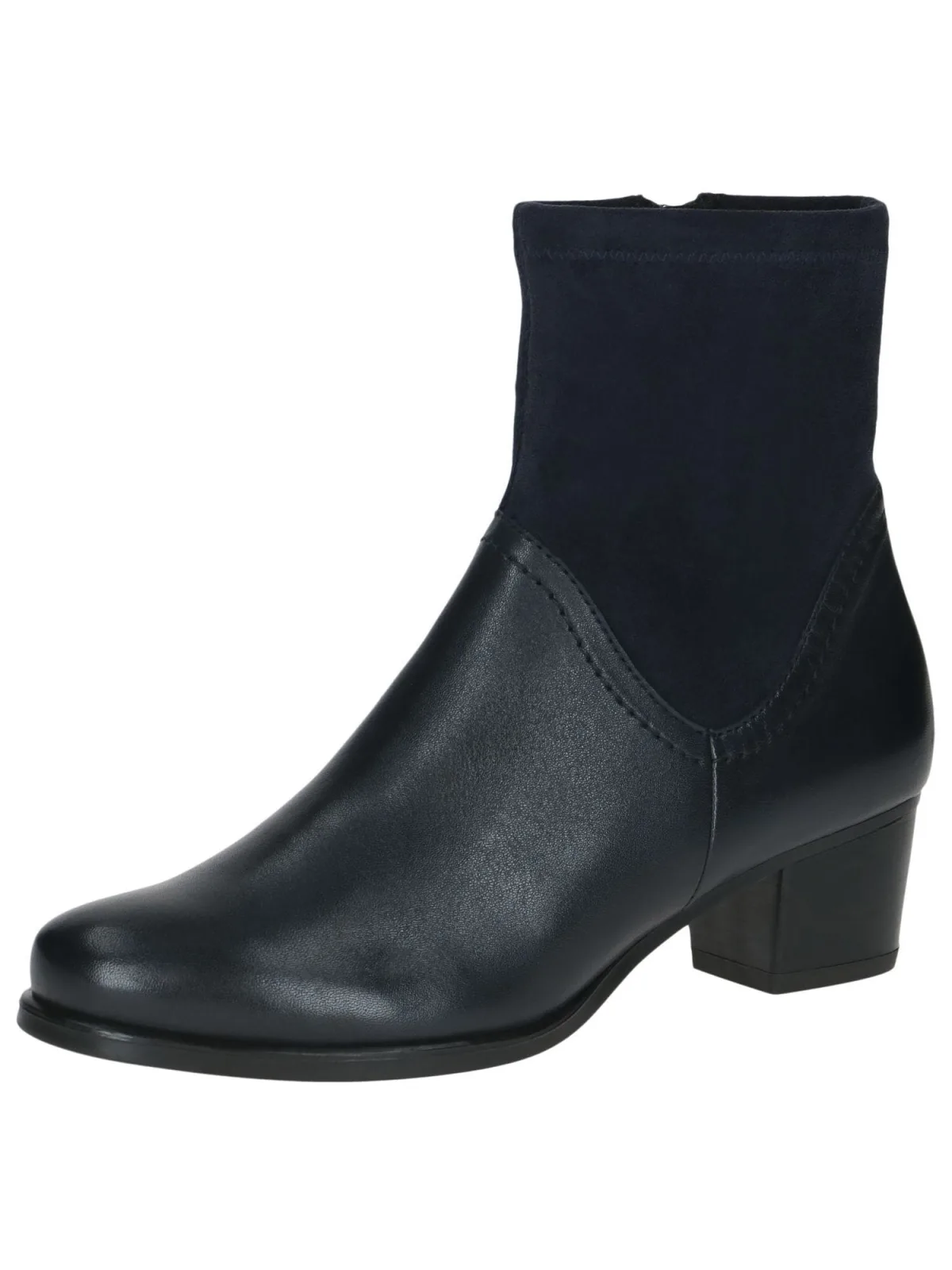 Design: Ritszakken aan de zijkant, Enkelhoog, Materiaal mix; Type sluiting: Ritssluiting; Type hak: Blokhak; Materiaal: Leer; Motief: Effen; Materiaal: Glad leer; Schoenneus: Ronde neus; Extra’s: Flexibele zool; Hakhoogte: Middelhoge hak (3-7 cm)