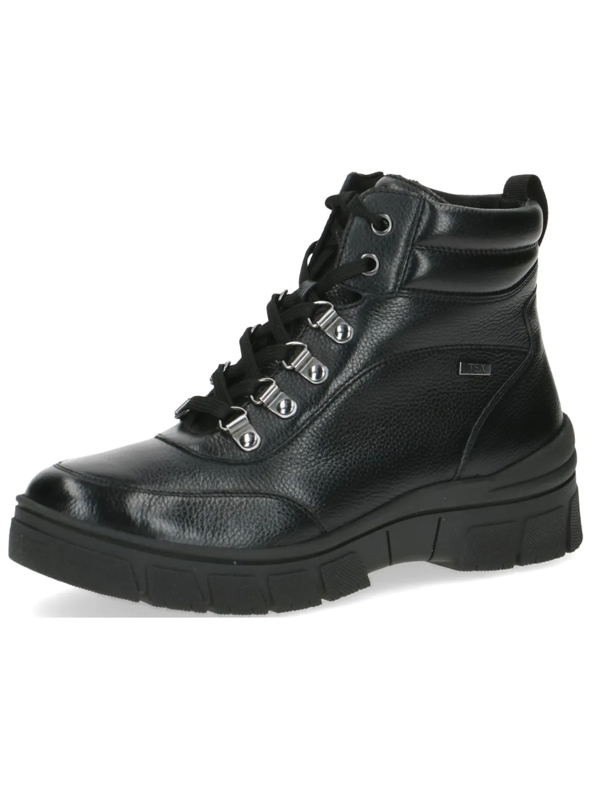 Design: Ritszakken aan de zijkant, Versterkte hak, Hielband; Type sluiting: Snoersluiting; Voering: Licht gevoerd; Materiaal: Leer; Motief: Effen; Type zool: Profiel; Schoenneus: Ronde neus; Extra's: Korrelig leder, Gewatteerde rand, Metalen oogjes; Voering: Warm gevoerd; Hakhoogte: Platte hak (0-3 cm)