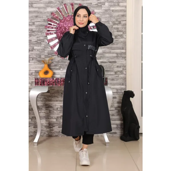 Stofkenmerk: Gemaakt van Bondit stof. Productkenmerk: Nieuwe seizoens hijab modeproduct. Voering van bont. Voorkant met rits. Zak beschikbaar. Elastische manchetten. Verwijderbare capuchon. Taille met strik. Productkleur kan variëren door conceptfoto's. Het model draagt maat 38. Maat 38 Jasmetingen: Productlengte: 118 cm - Borst: 102 cm - Taille: 88 cm - Heupen: 110 cm. Maatmetingen nemen toe met 3 of 4 cm. (Productlengte verandert niet)