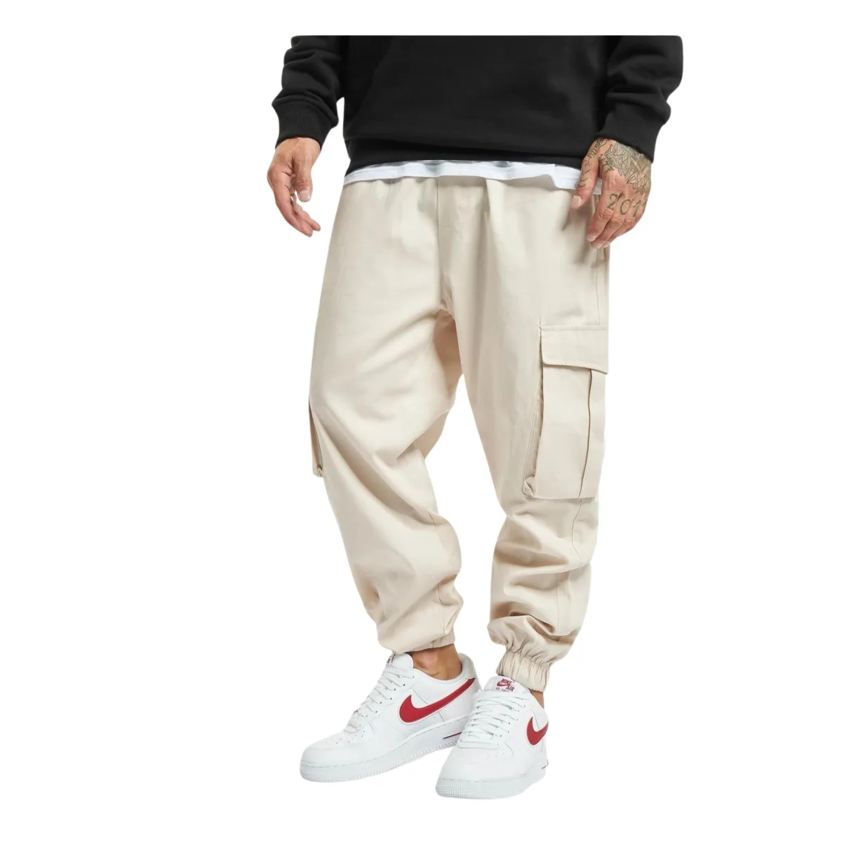 Shell Fabric 1: 63% Katoen 37% Nylon & Polyamide, 3.08 ozmoderne cargo broek met diverse zakken voor heren van DEFelastische tailleband met trekkoord en stopper zorgt voor een strakke pasvormsteekzakkeningezette achterzakkenopgezette beenzakkenextreem licht, glad materiaal zorgt voor uitstekend draagcomfort comfortelastische beenuiteinden voorkomen hinderlijk afzakkennonchalante snitMerk: DEFCat: cargo broekMateriaal: 85% katoen, 15% katoen nylon