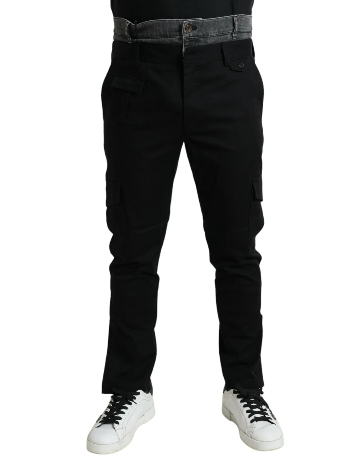 Stap omhoog, val op en maak je stijl eigen. Deze Dolce & Gabbana cargobroeken herdefiniëren dagelijkse luxe. Beleef premium comfort in een stijlvolle katoenen mix, perfect voor de hele dag. De kenmerkende denim tailleband voegt een vleugje haute couture flair toe. Meerdere zakken bieden praktisch nut zonder in te boeten op stijl. De recht gesneden pasvorm zorgt voor een veelzijdige fit. Deze iconische broeken integreren naadloos in jouw levensstijl, met zowel comfort als een opvallende uitstraling.