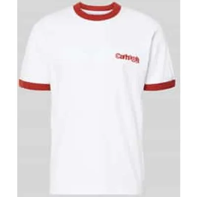 Heren T-shirt van Carhartt Work In Progress;Puur katoen;Regular Fit;Retro-look;Ronde hals;Label-Print;Ruglengte bij maat M: 69 cm