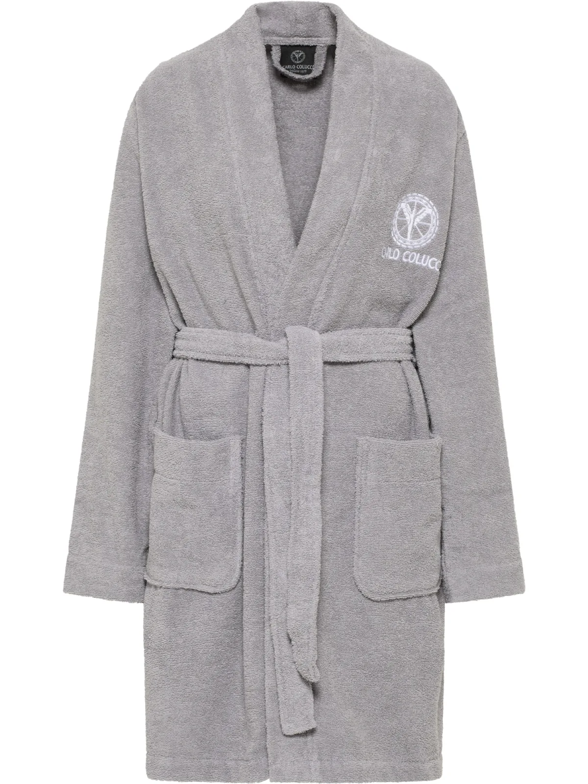Specificaties: Carlo Colucci Badjas kort ‘Vita’ zilver / wit