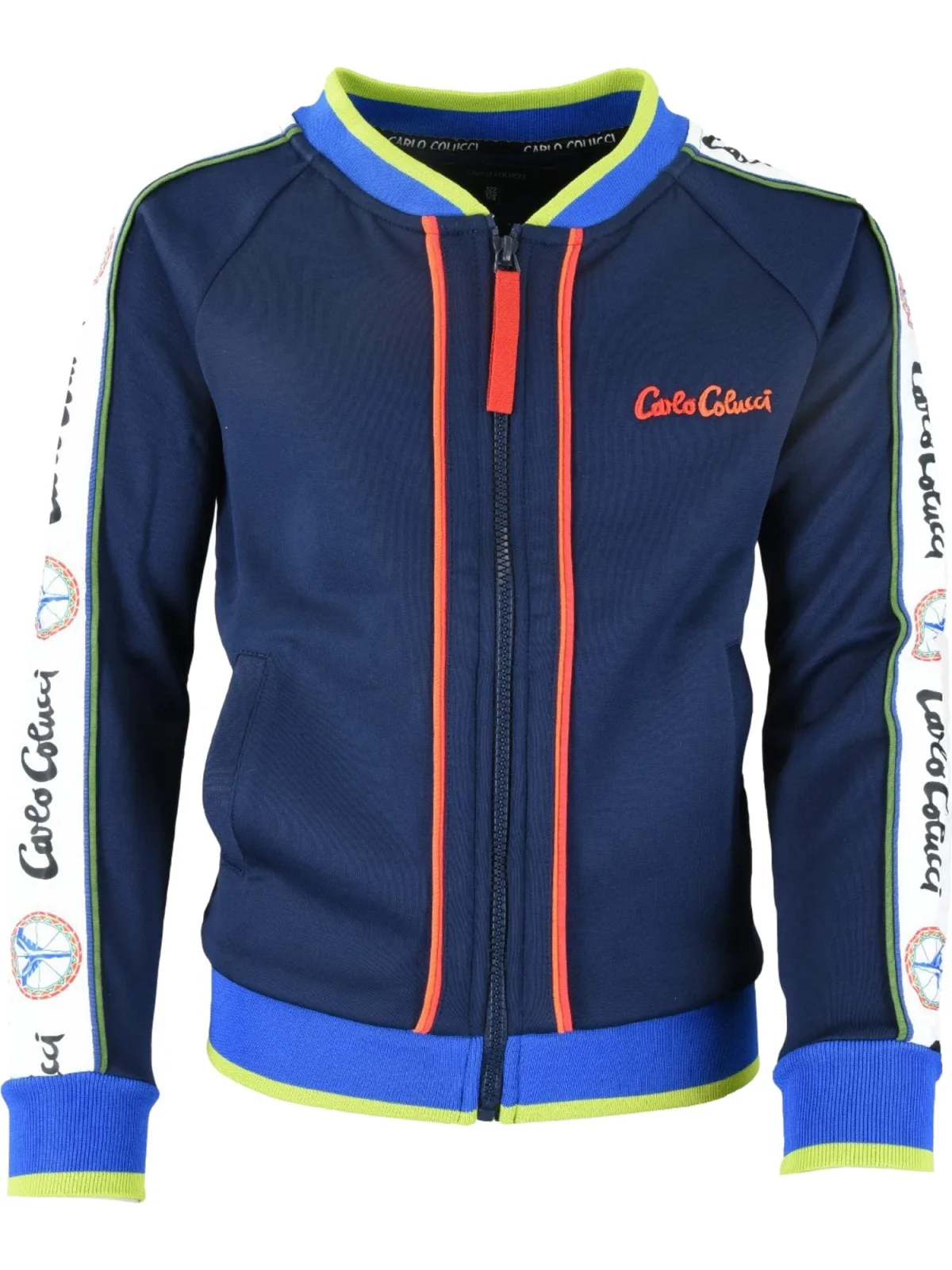 Specificaties: Carlo Colucci Sweatvest ‘Carrado’ navy / donkerblauw / limoen / grenadine / wit