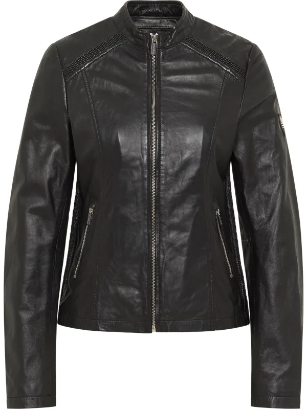 Type sluiting: Ritssluiting; Type jas: Bikerjack; Voering: Licht gevoerd; Materiaal: Leer; Motief: Effen; Pasvorm: Normale pasvorm