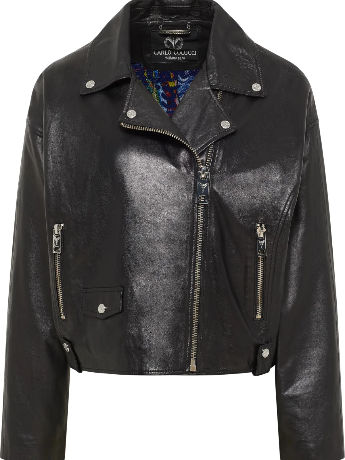 Type sluiting: Ritssluiting; Type jas: Bikerjack; Voering: Licht gevoerd; Materiaal: Leer; Motief: Effen; Pasvorm: Normale pasvorm