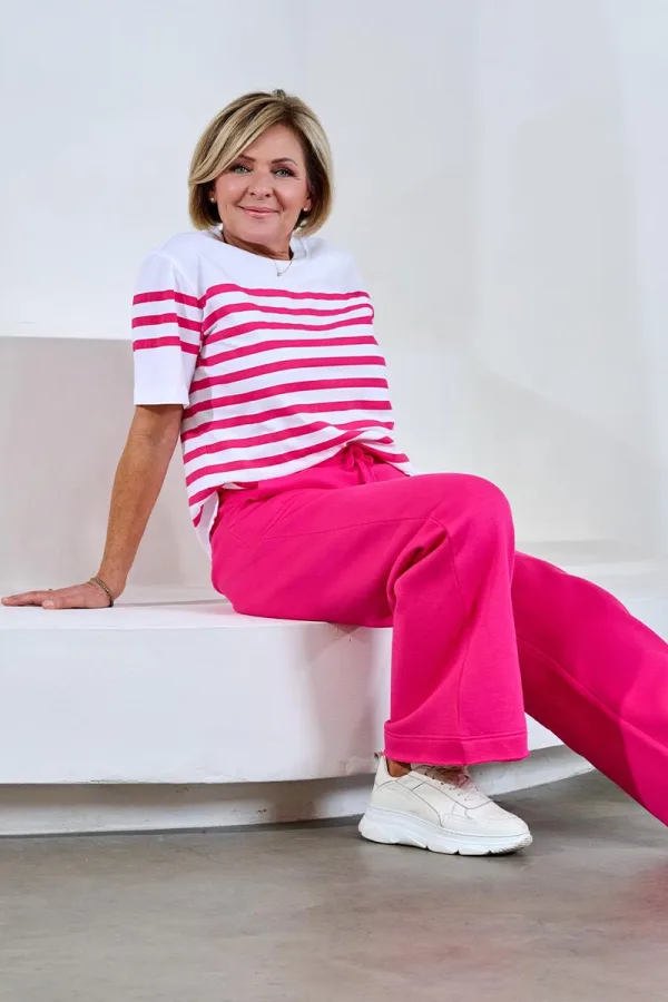 Caroline Tensen Elba Streep T-Shirt Wit / Fuchsia Prijzen