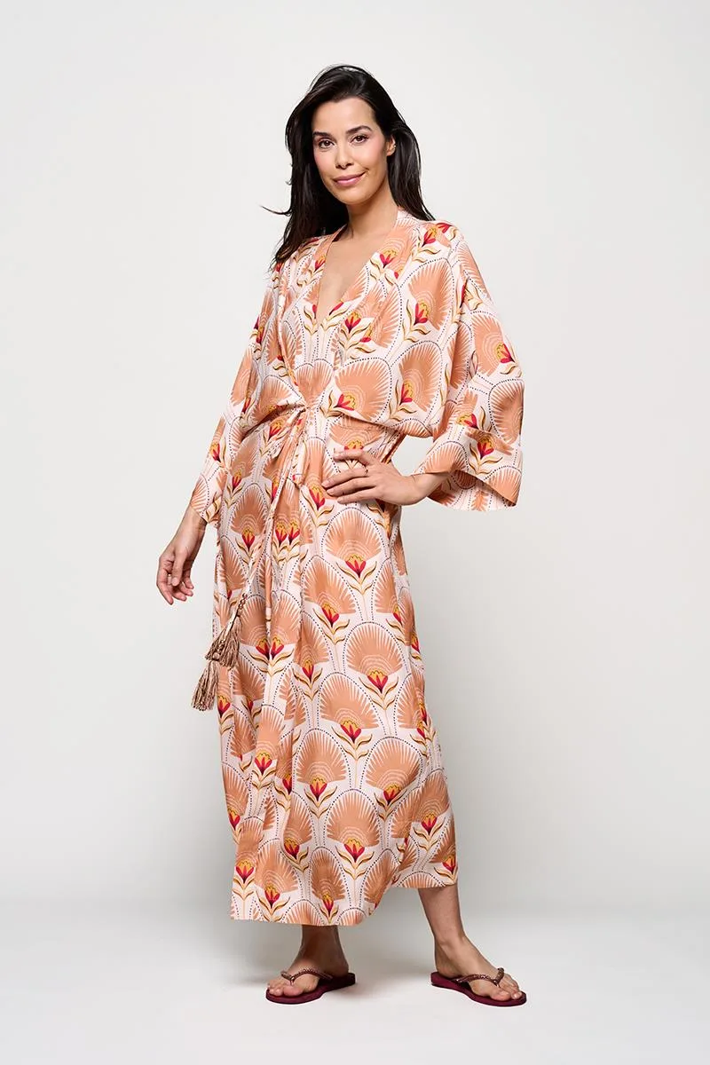 Caroline Tensen Islay Kimono Jurk Zand / Multi