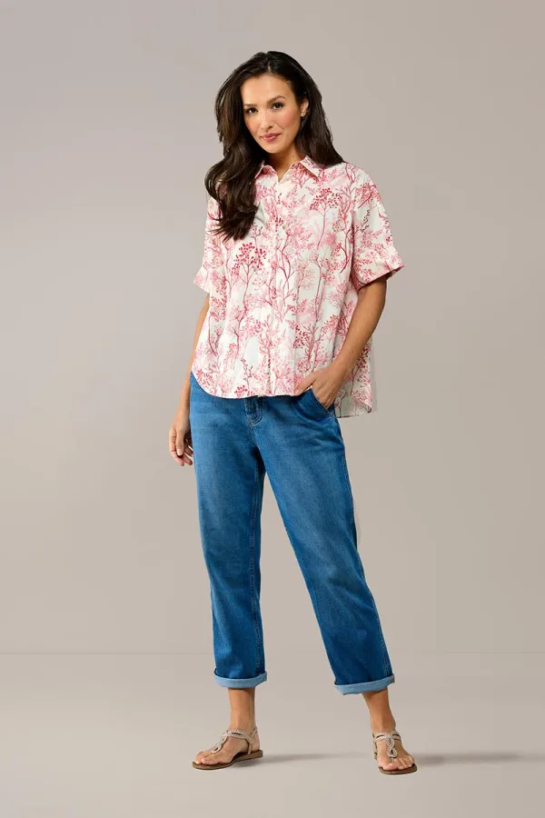 Deze lente en zomer staan vrolijke prints volop in de schijnwerpers! De Leeds blouse met korte mouwen springt in het oog door zijn opvallende oranje botanische print. De levendige bloemen en planten in tinten van oranje, roze en rood maken deze blouse tot een echte eyecatcher. De blouse heeft korte mouwen met een omslag en een drop shoulder effect, wat zorgt voor een relaxte, moderne uitstraling. De oranje geprinte blouse valt tot op de heup, heeft een oversized pasvorm en een afgeronde onderkant met een langere achterkant. Gemaakt van 100% katoen, biedt deze blouse ademend comfort op de warmere dagen. Stijltip: De Leeds blouse is ook verkrijgbaar in een blauwe print, of kies voor de Leeds check blouse met een vrolijk ruitpatroon in groen/wit of blauw/wit.