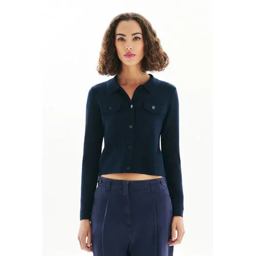 De Caroll trui Mflo is een kort, recht model met een rustige, verzorgde uitstraling. De combinatie van een overhemdkraag en knoopsluiting doet denken aan een blouse, terwijl het breisel zorgt voor zachtheid en gemak. Geschikt voor dagen waarop je er netjes uit wilt zien zonder veel tijd kwijt te zijn aan je outfit.Korte rechte trui met blouse-details Korte rechte pasvorm die de natuurlijke lijnen volgt zonder strak te zitten Overhemdkraag en volledige knoopsluiting voor een nette, blouseachtige look Lange rechte mouwen voor extra draagcomfort Lengte ca. 51 cm bij maat S, valt tot boven de taille Met praktische borstzakken voor een subtiel, casual accent Gemaakt van 69% viscose en 31% polyester voor een soepele, zachte touchGeschikt voor werk en vrije tijdDe korte lengte benadrukt de taille en geeft structuur aan de outfit. Door de combinatie van breisel en blouse-details kan deze trui zowel in informele omgevingen als op kantoor gedragen worden.De zorgvuldige afwerking van CarollCaroll ontwerpt modellen met een moderne twist en aandacht voor pasvorm. Deze trui vraagt om handwas om het breisel in goede conditie te houden. Strijken op lage temperatuur zonder stoom helpt om de vorm en uitstraling langdurig te bewaren.Een veelzijdig bovenstuk, geschikt voor zowel werkdagen als vrije tijd.