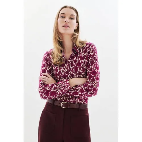 Deze dames blouse van Caroll valt subtiel op in je garderobe. Het hemdmodel met klassieke kraag en knoopsluiting krijgt een speelse twist door de fijne bladprint in wit en donkerrood. De rechte snit valt mooi langs het lichaam en zorgt voor een ontspannen, verzorgde uitstraling, of je nu naar kantoor gaat of een etentje op de planning hebt.Details die je elke dag kunt dragen Hemdmodel met klassieke hemdkraag en lange mouwen Rechte snit die soepel langs het lichaam valt Lengte 67 cm bij maat 38 voor een comfortabele dekking Knoopsluiting aan de voorzijde voor makkelijk aan- en uittrekken Zachte, soepele stof met bladprint in wit en donkerrood Verkrijgbaar in maten 34 tot en met 46 Onderhoud: chemische reiniging aanbevolen, of wassen op 30°C in een delicate cyclus, niet in de droger, strijken tot 150°Van werkdag tot weekendVoor een verzorgde look combineer je het hemd met een vloeiende broek, een smalle riem en pumps. Liever casual en ontspannen, kies dan voor een strakke donkere jeans en leren mocassins. De rechte pasvorm maakt het eenvoudig om de blouse zowel ingestopt als los te dragen.Caroll: Franse stijl voor elke dagCaroll staat bekend om doordachte collecties met aandacht voor pasvorm en nette afwerking. De ontwerpen sluiten aan bij een moderne, vrouwelijke stijl die je makkelijk combineert met je bestaande garderobe.Een veelzijdig hemd dat je het hele seizoen door kunt dragen.