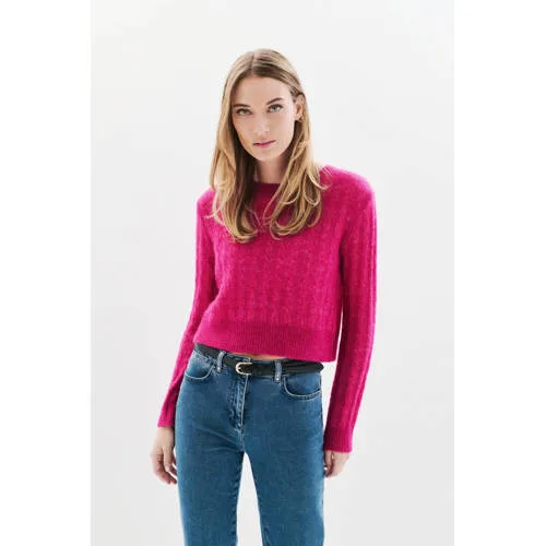 Caroll gebreide trui fuchsia met kabels Prijzen