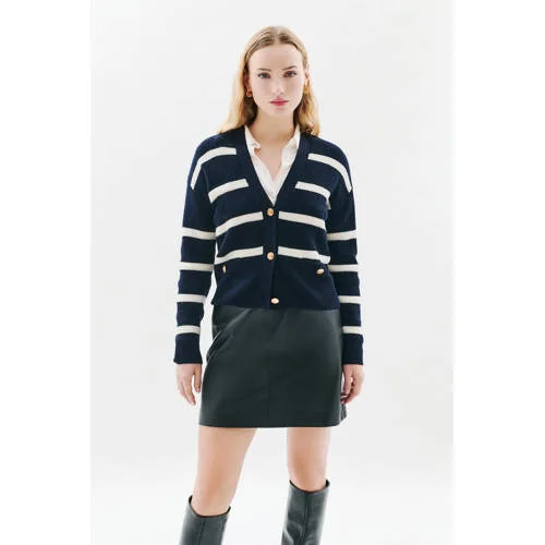Caroll gestreepte gebreid vest met wol donkerblauw