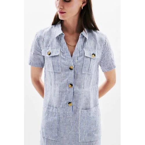 Caroll linnen gestreepte blousejurk medium blue denim Prijzen