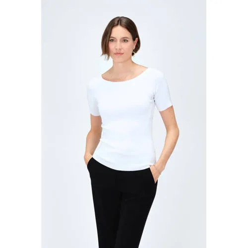Voor een frisse, vrouwelijke look in het nieuwe seizoen is dit Caroll dames T-shirt een fijne basis. De dunne tricot van viscose zit soepel om het lichaam en volgt subtiel je vormen. De boothals legt het accent op je halslijn en de bovenkant van je schouders, waardoor het T-shirt zowel netjes als ontspannen oogt. Onder een blazer voor naar kantoor of casual op je favoriete jeans, dit model past zich makkelijk aan jouw dag aan.Details die het verschil maken Aansluitende pasvorm die mooi langs het lichaam valt zonder te strak te zitten Boothals die je decolleté en halslijn op een elegante manier benadrukt Raglan mouwinzet voor een zachte schouderlijn en comfortabele beweging Korte, rechte mouwen die je armen subtiel bedekken, ideaal voor het voorjaar en de zomer Gemaakt van 72% viscose en 28% polyamide voor een zachte touch en vormvast draaggevoel Effen kleur, makkelijk te combineren met andere items in je garderobe Gladde tricot zonder zakken voor een rustige, nette uitstralingVan werkdag tot weekendDit T-shirt draag je net zo makkelijk naar kantoor als tijdens een etentje of een vrije dag. Combineer het met een blazer en een pantalon voor een verzorgde werklook. Op een flare jeans of een korte rok krijgt het meteen een meer casual, maar nog steeds verfijnde uitstraling.Caroll: Franse eenvoud met klasseCaroll staat bekend om tijdloze mode met een moderne twist. De collecties zijn ontworpen met aandacht voor pasvorm, draaggemak en subtiele details. Zo haal je kleding in huis waar je seizoen na seizoen op kunt vertrouwen.Een veelzijdig T-shirt dat je garderobe rustig, stijlvol en compleet maakt.