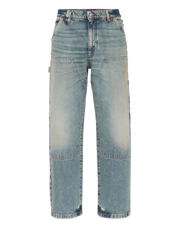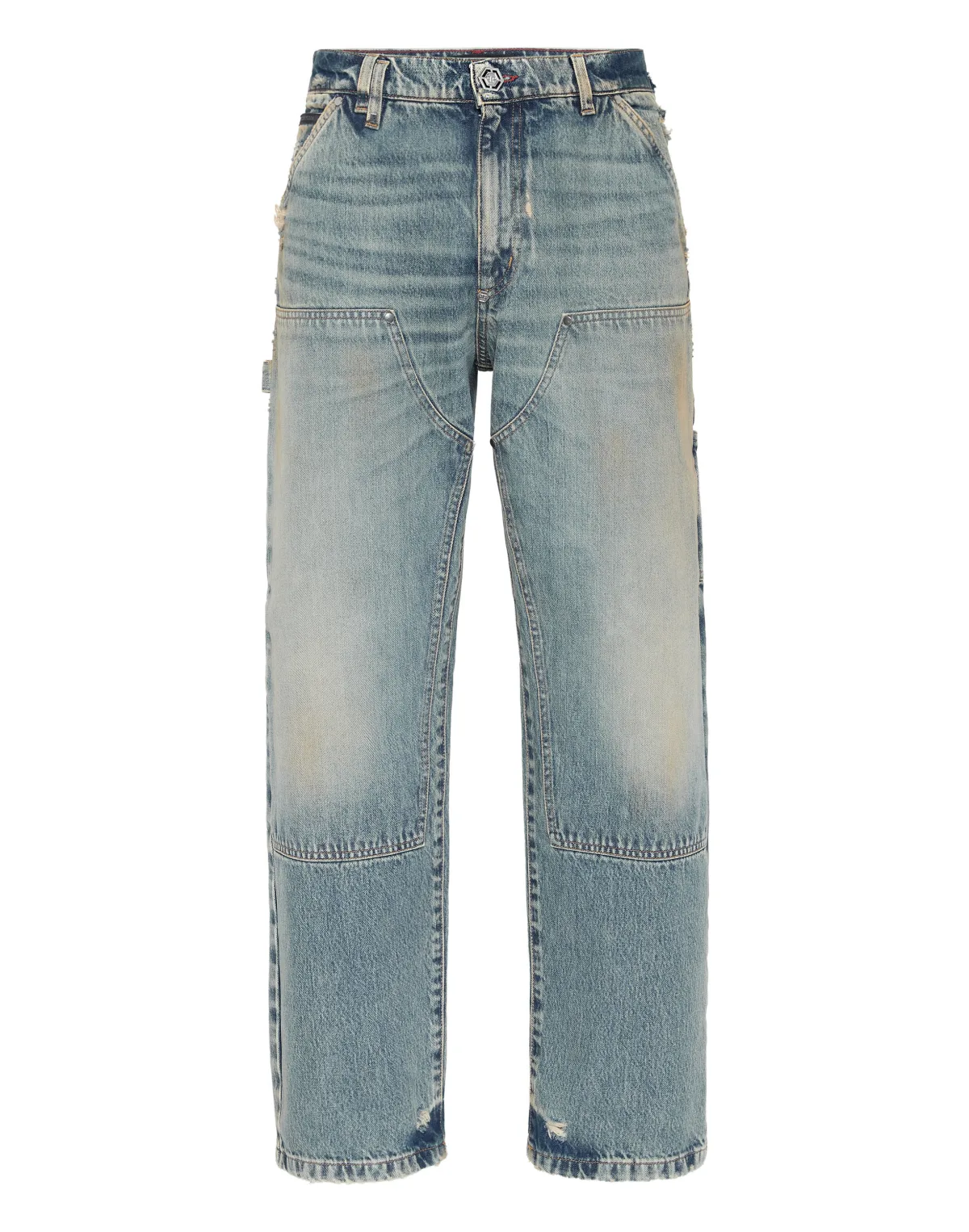 Doorbreek uw gebruikelijke routine en kies voor iets echt origineels, zoals deze opvallende denim broek geïnspireerd op de wereld van arbeiders. Steengewassen denim Werkzakken toegevoegd langs de pijpen Enkele metalen knoop Opgenaaide patch met logo op de achterkant Pasvorm: Timmerman