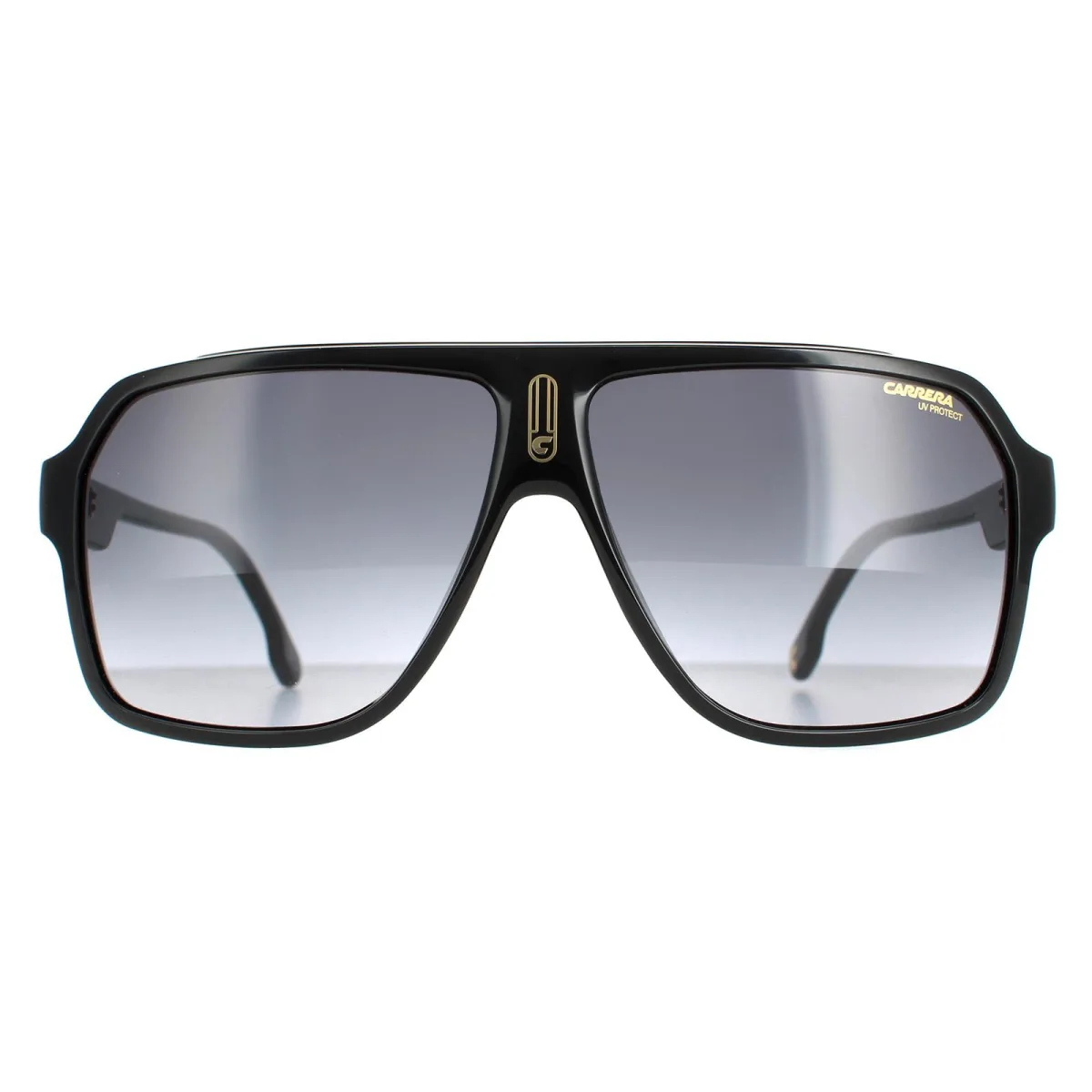 Carrera Aviator Mannen Black Gold Dark Gray Gradiënt 1030/s Zonnebrillen zijn een koele en klassieke Carrera Squared Aviator -stijl gemaakt van lichtgewicht polyamide. De Carrera C staat vooraan en in het midden en de tempels hebben ook Carrera -branding.