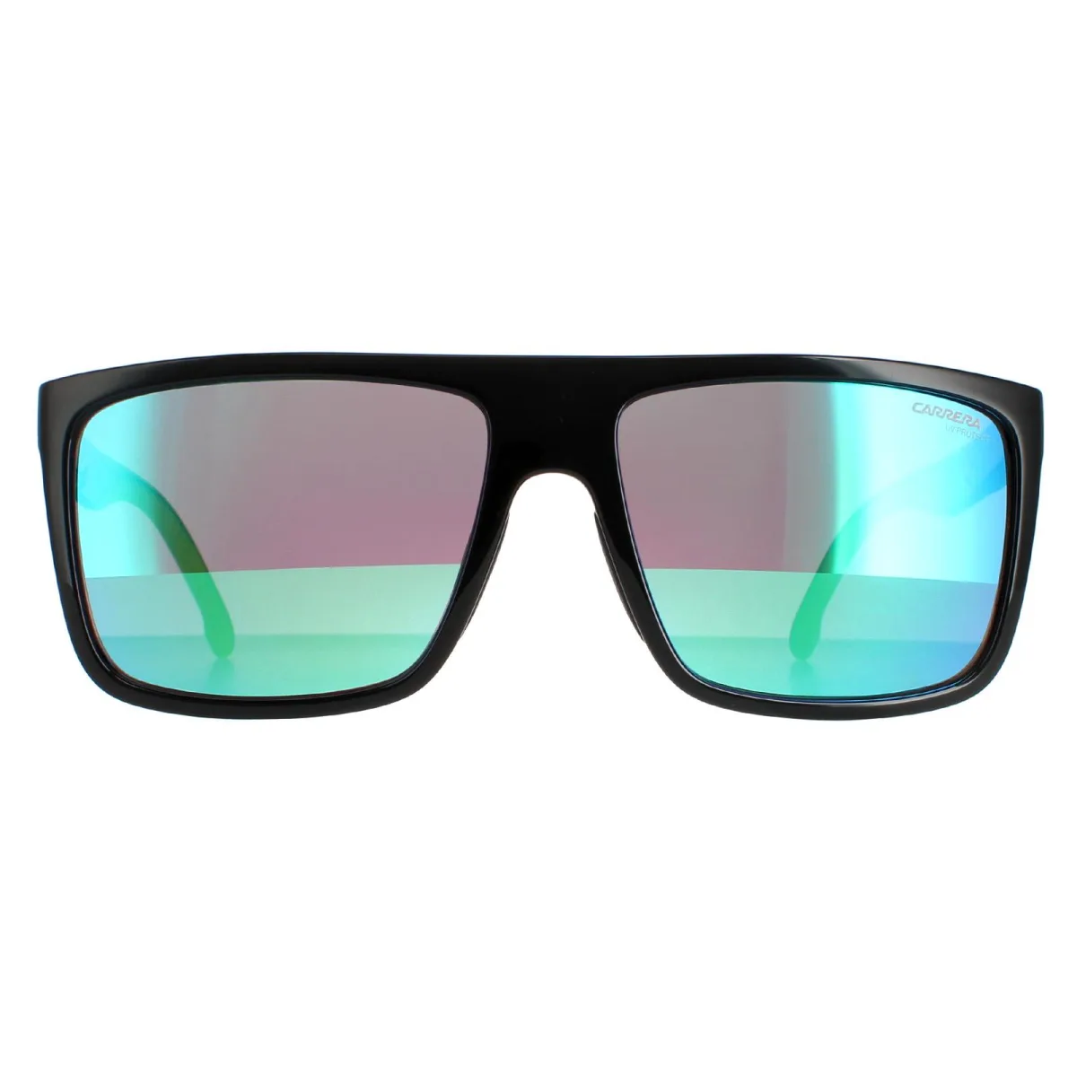 Carrera Square Mens Black Green Green Multilayer Mirror 8055/s 8055/s zijn een lichtgewicht rechthoekige stijl met een platte bovenste frame vooraan en een gekleurde kenmerkende Carrera 'C' op de tempels om te passen bij de tempeltips.