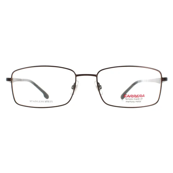 De Carrera 8855 09Q Bruin Heren is een eenvoudige rechthoekige bril van lichtgewicht metaal. Siliconen neuspads zorgen voor comfortabel dragen de hele dag door. Het Carrera logo is ingelegd in de slanke slapen om de authenticiteit van het merk te garanderen.