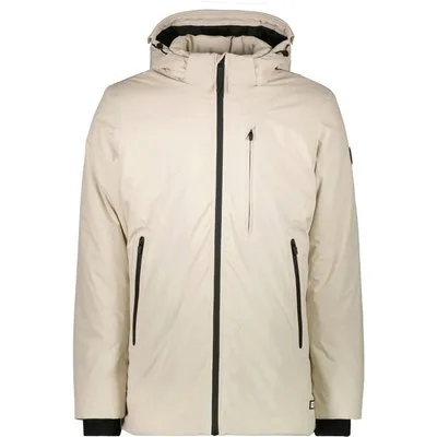 Specificaties: * Pasvorm: regular fit * Temperatuurregeling: warme, gewatteerde voering * Rits: volledige ritssluiting * Zakken: twee zakken met ritssluiting * Capuchon: vaste capuchon * Manchetten: elastische manchetten aan de mouwen * Kleur: beige * Materiaal: 98% polyester – 2% katoen
