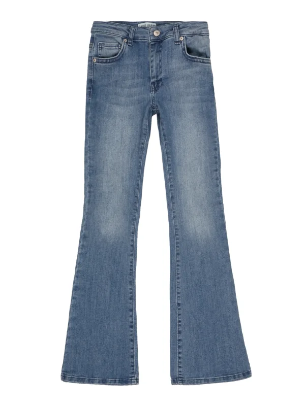 Kinderen jeans van CARS JEANS;elastische katoenmix;Flared fit;Model ‘Veronique’;Logo-patch;5-pocketmodel;knoop- en ritssluiting;Bandwijdte bij maat 140: 33 cm;Binnenbeenlengte bij maat 140: 59 cm