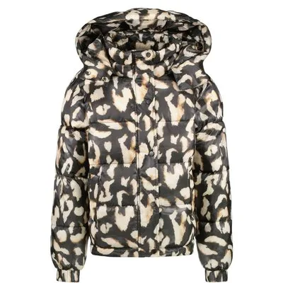 Specificaties: * Pasvorm: regular fit * Temperatuurregeling: warme voering; waterafstotend materiaal * Rits: volledige ritssluiting met stormflap * Zakken: twee zakken met ritssluiting * Capuchon: vaste capuchon * Manchetten: elastische manchetten aan de mouwen * Kleur: zwart – bruin * Materiaal: 100% polyester