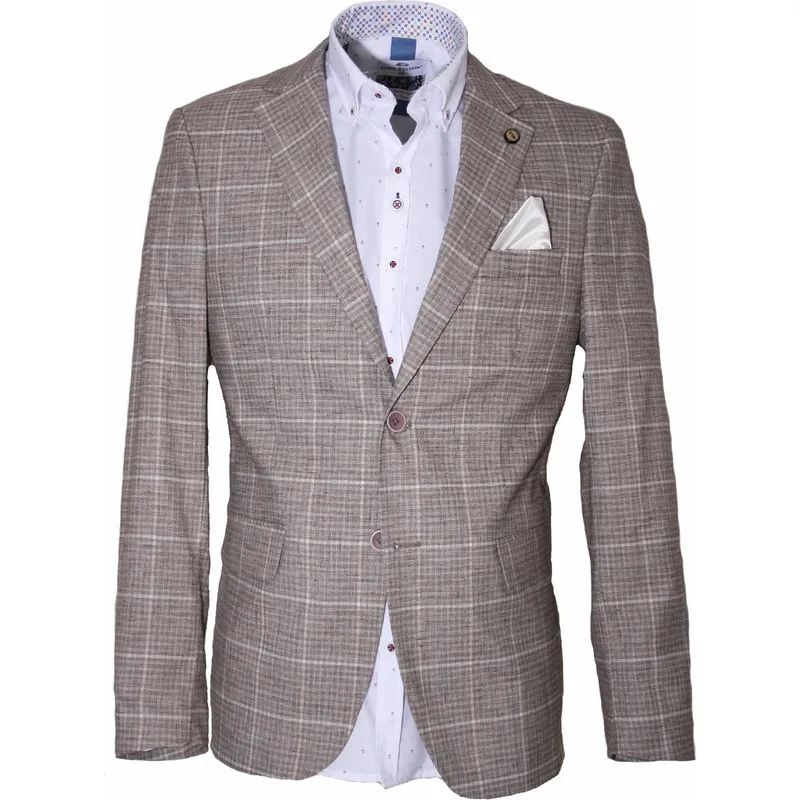 Geruit heren colbert van Carter & Davis met een linnen optiek. Modern fit 2 Splits 63% Polyester/ 25% Viscose/ 10% Katoen/ 2% Elasthan Kleurnummer: 340