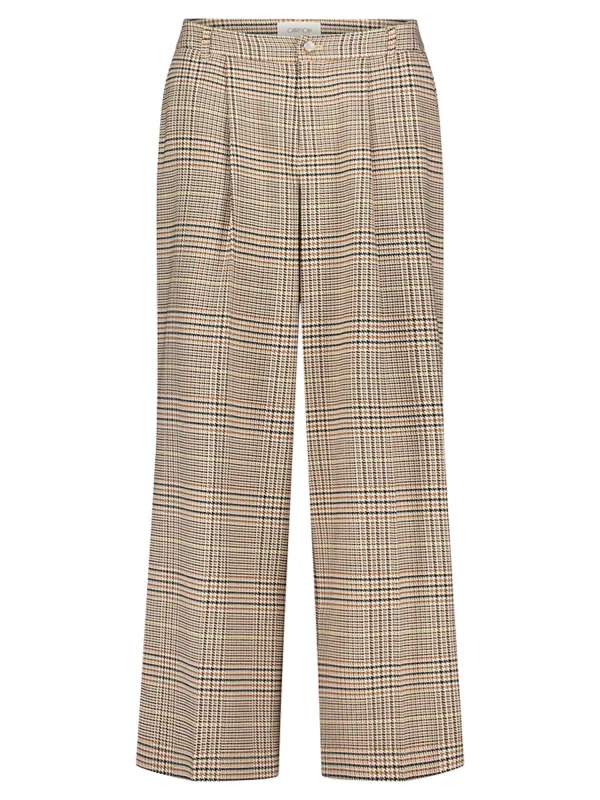 Design: Rechte zoom, Achterzak, Zakken aan de zijkant; Type sluiting: Ritssluiting; Motief: Geruit; Details: Plooien; Extra's: All-over patroon, Riemlussen; Lengte: 7/8 lengte; Pasvorm: Wide leg; Taillehoogte: Mid waist