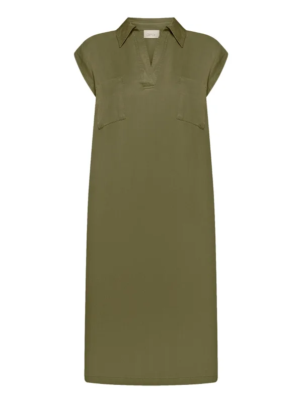 Materiaal: Lyocell; Halstype: V-hals; Motief: Effen; Lengte: Knielengte; Pasvorm: Normale pasvorm; Armlengte: Kwartmouw
