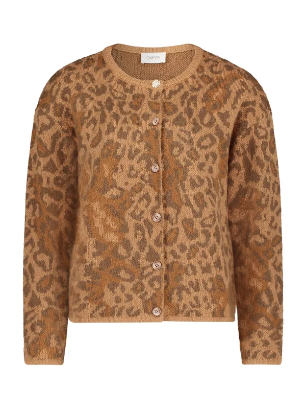 Design: Rechte zoom, Knop placket; Type sluiting: Knoopsluiting; Materiaal: Knitwear; Halstype: Ronde hals; Motief: Dierenprint; Extra's: All-over patroon, Voelt zacht aan; Pasvorm: Normale pasvorm; Armlengte: Lange mouw; Lengte: Normale lengte