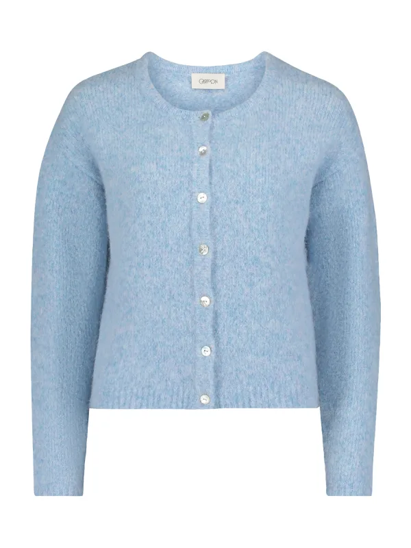 Design: Geribbelde kraag, Knop placket; Type sluiting: Knoopsluiting; Materiaal: Knitwear; Halstype: Ronde hals; Motief: Mélange; Extra's: Fully fashioned, Voelt zacht aan; Pasvorm: Normale pasvorm; Armlengte: Lange mouw; Lengte: Normale lengte
