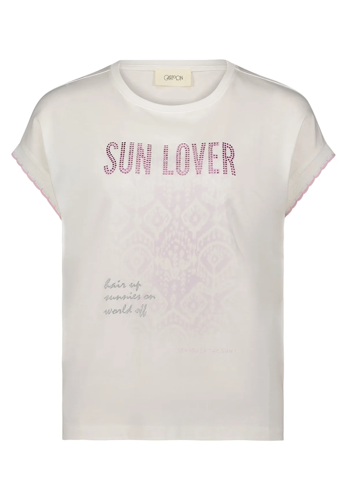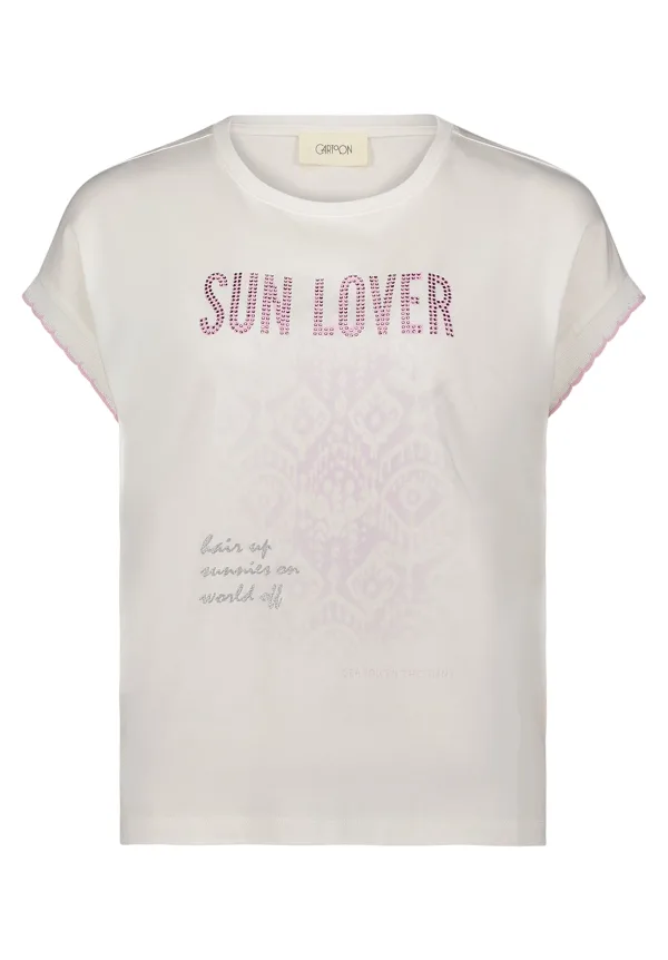 Design: Gevoerde zoom/rand, Nektape; Materiaal: Jersey; Halstype: Ronde hals; Motief: Tekst print; Details: Sierstenen; Extra's: Op staal naden, Voelt zacht aan; Pasvorm: Normale pasvorm; Armlengte: Kwartmouw; Lengte: Normale lengte