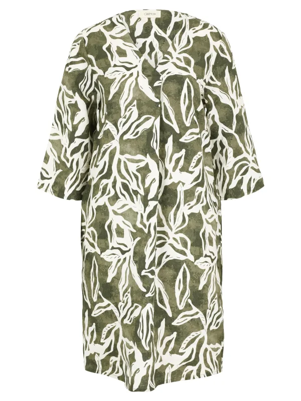 Design: Gevoerde zoom/rand, Zakken aan de zijkant; Materiaal: Linnen; Halstype: V-hals; Motief: Bloemenprint; Details: Plooien; Extra's: All-over patroon, Lichte stof; Lengte: Knielengte; Pasvorm: Normale pasvorm; Armlengte: Driekwart mouw