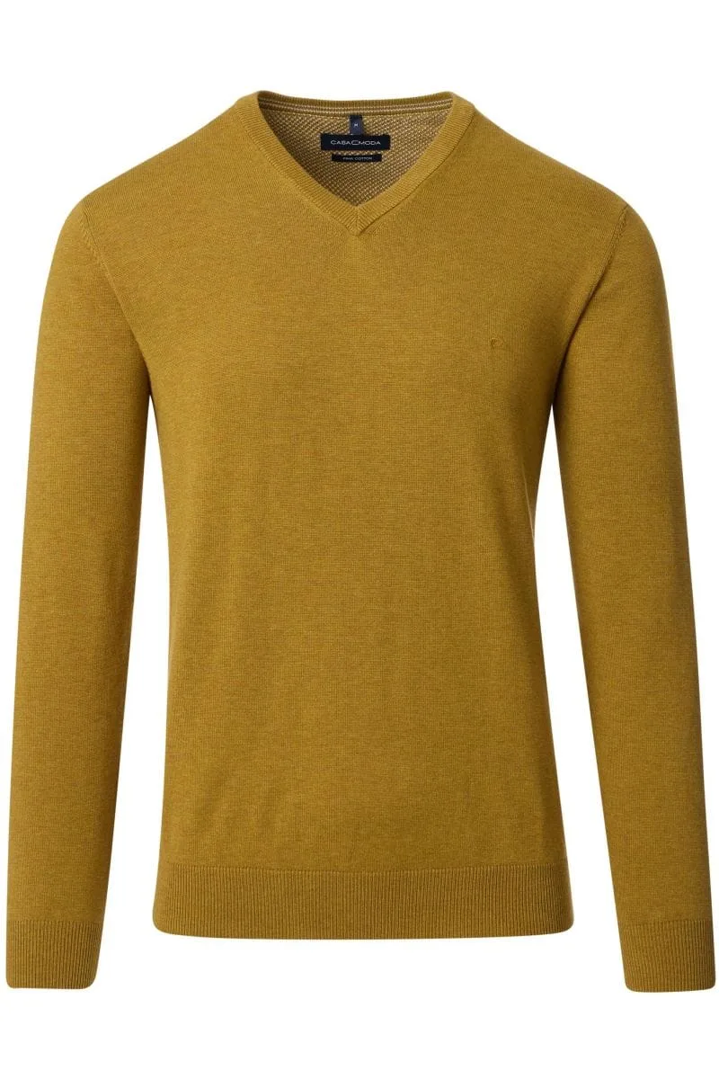 Casa Moda Casual Fit Trui V-halsgeel, Effen Prijzen
