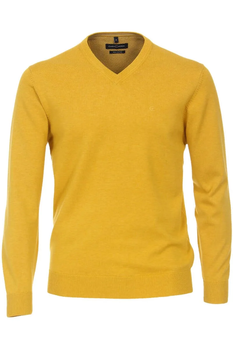 Casa Moda Casual Fit Trui V-halsgeel, Effen Prijzen