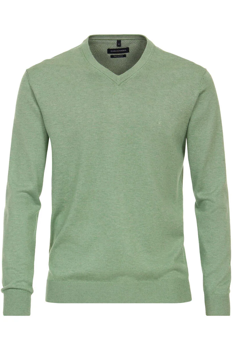 Casa Moda Casual Fit Trui V-halsgroen, Effen Prijzen