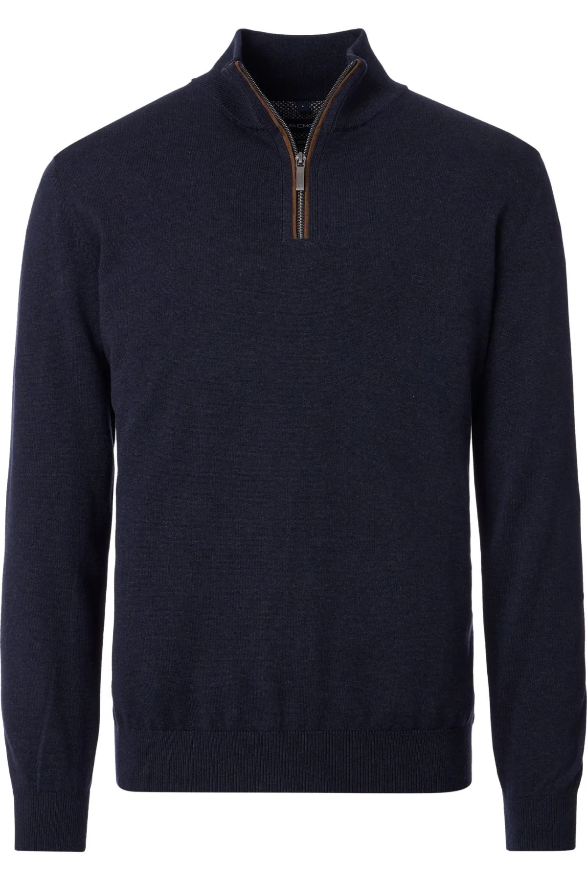 Casa Moda Casual Half-Zip Sweater blauw, Effen