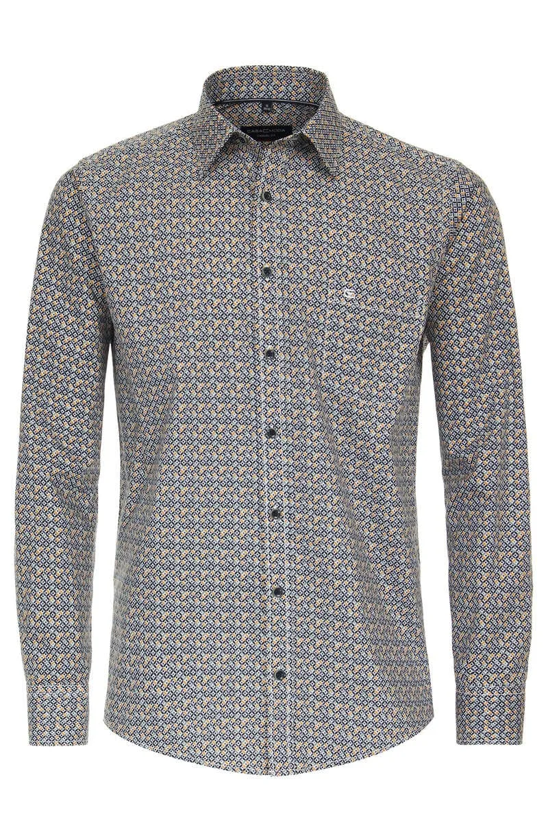 CASA MODA Sport casual fit overhemd popeline geel dessin Strijkvriendelijk...