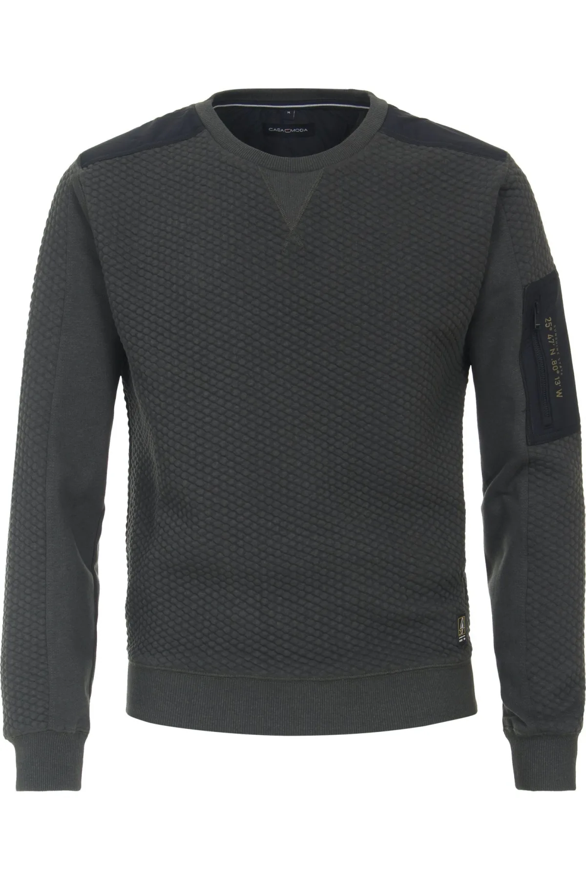 Casa Moda Casual Sweatshirt ronde hals olijfgroen, Effen Prijzen
