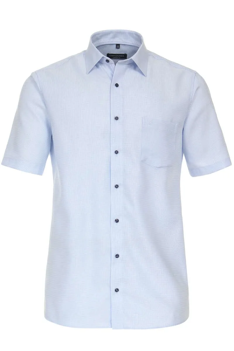 CASA MODA comfort fit overhemd korte mouw dobby blauw Strijkvrij...