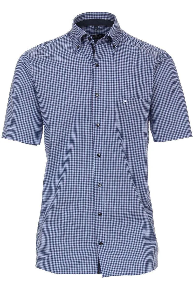 CASA MODA comfort fit overhemd korte mouw popeline blauw geruit...